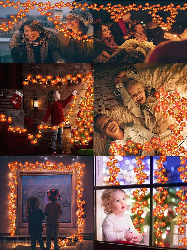 Halloween decorations: They are unique Halloween indoor and outdoor decorations, showing off the exciting Halloween atmosphere, you can decorate with maple leaf lights. There are autumn wreaths suitable for Halloween decorations for doors, windows or outdoor decorations; it helps you create a thrilling atmosphere that matches the theme of the holiday.